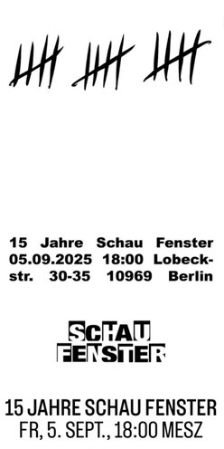15 Jahre Schaufenster, Opening: 05.09.25, 18 Uhr. Schaufenster Berlin.
